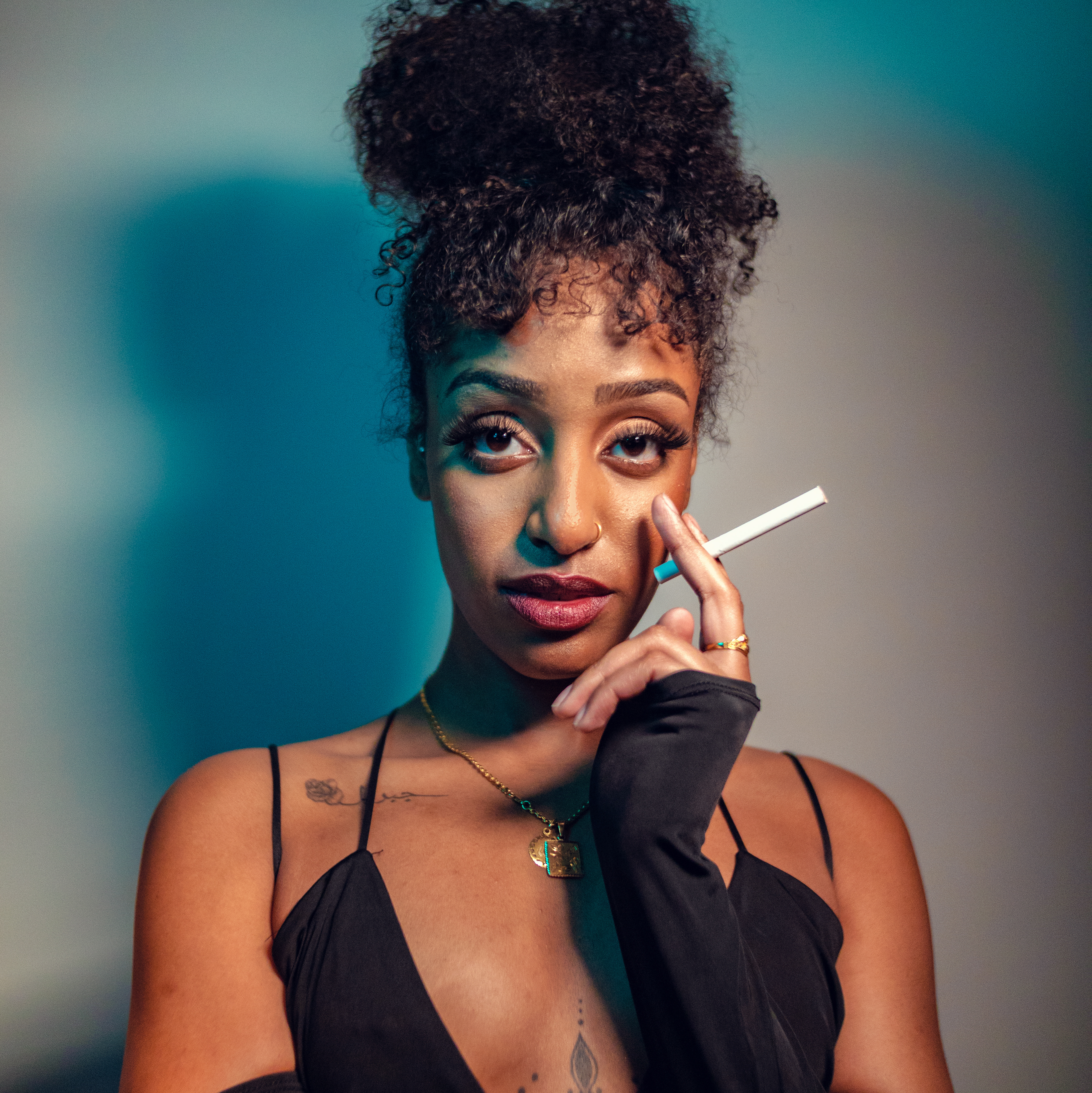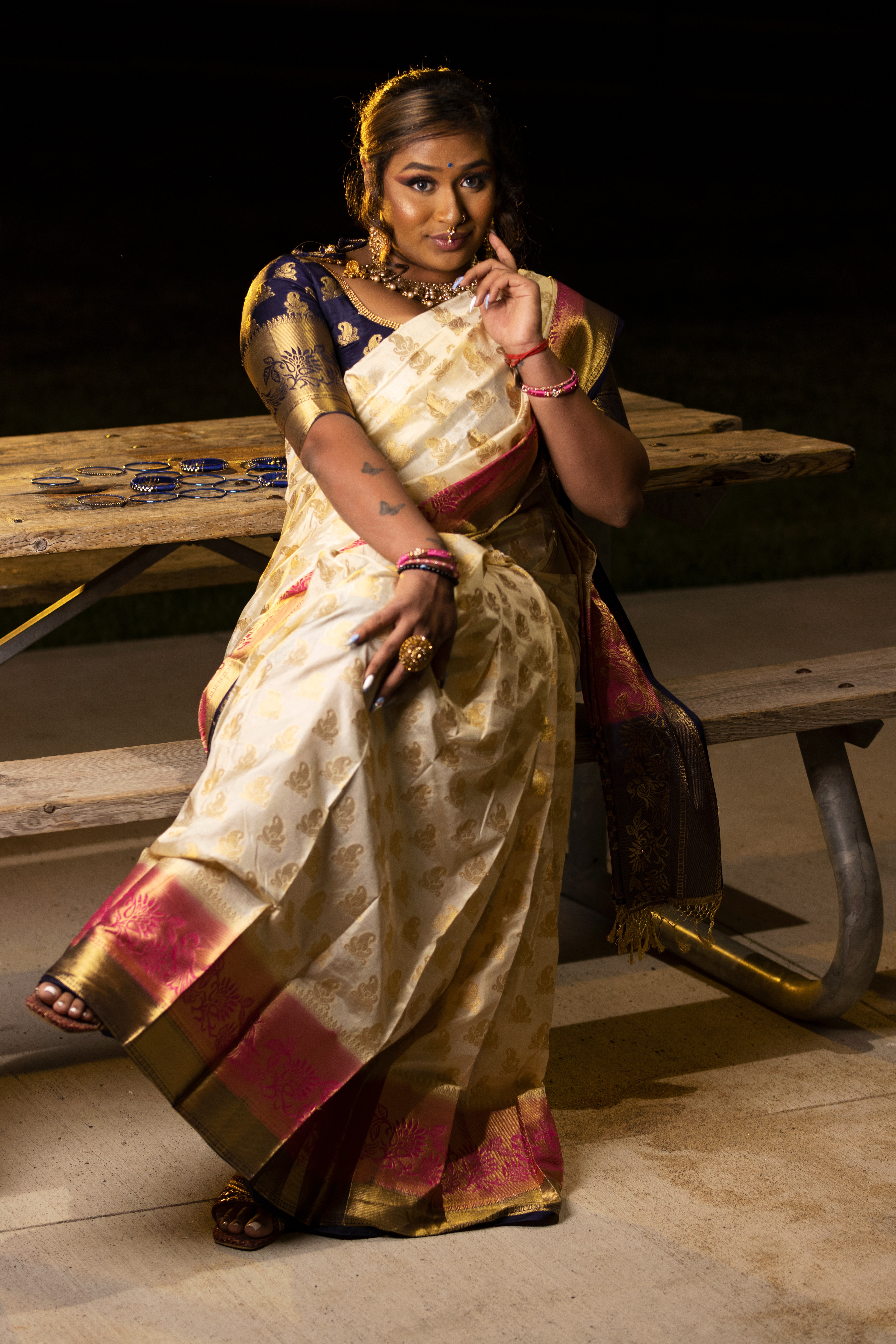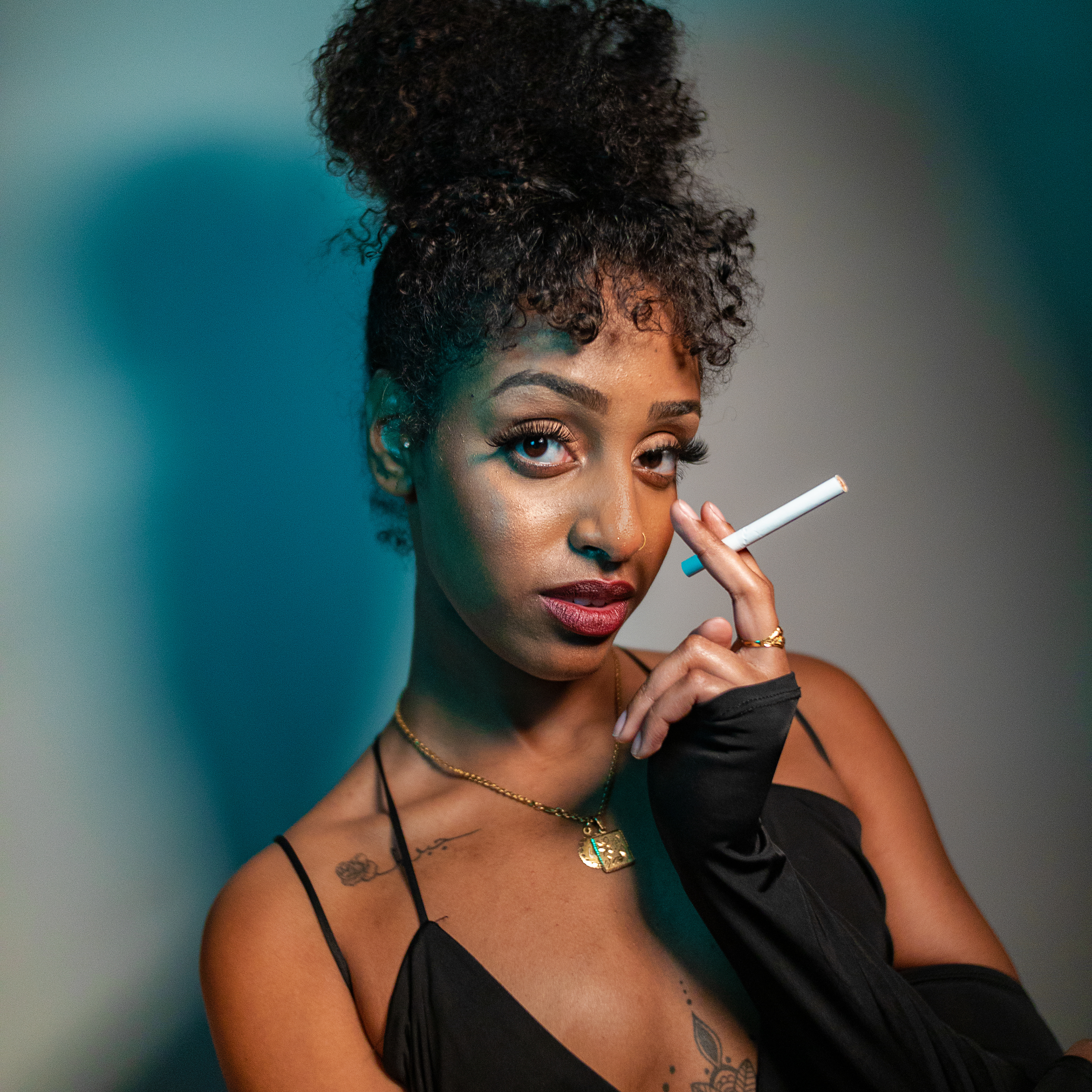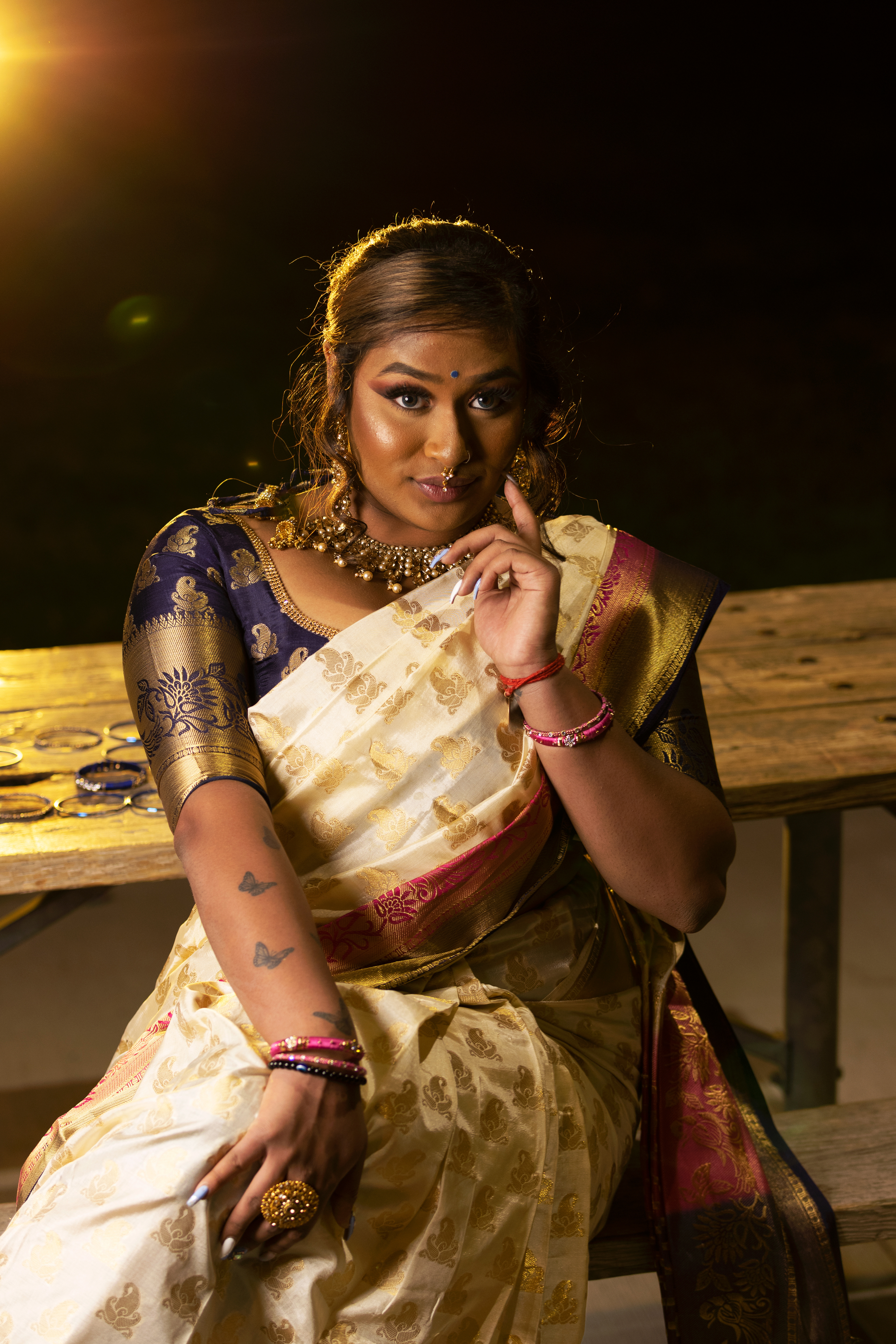 Frames here are focused on the model interacting with their environment through means of fabric, designs, texture and props.